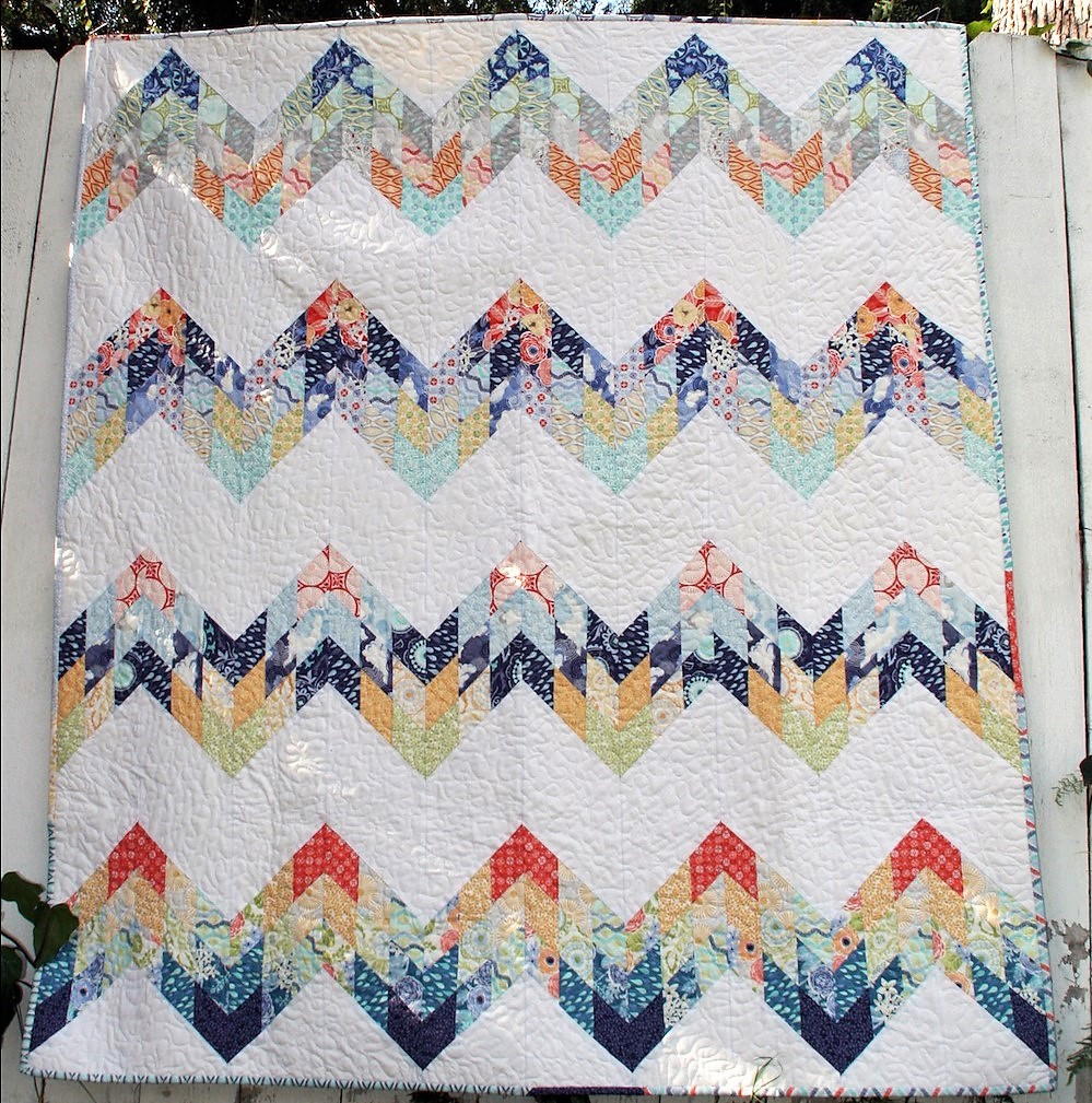 The Mod Mountains quilt pattern includes instructions and fabric requirements for queen/full, twin, throw and.